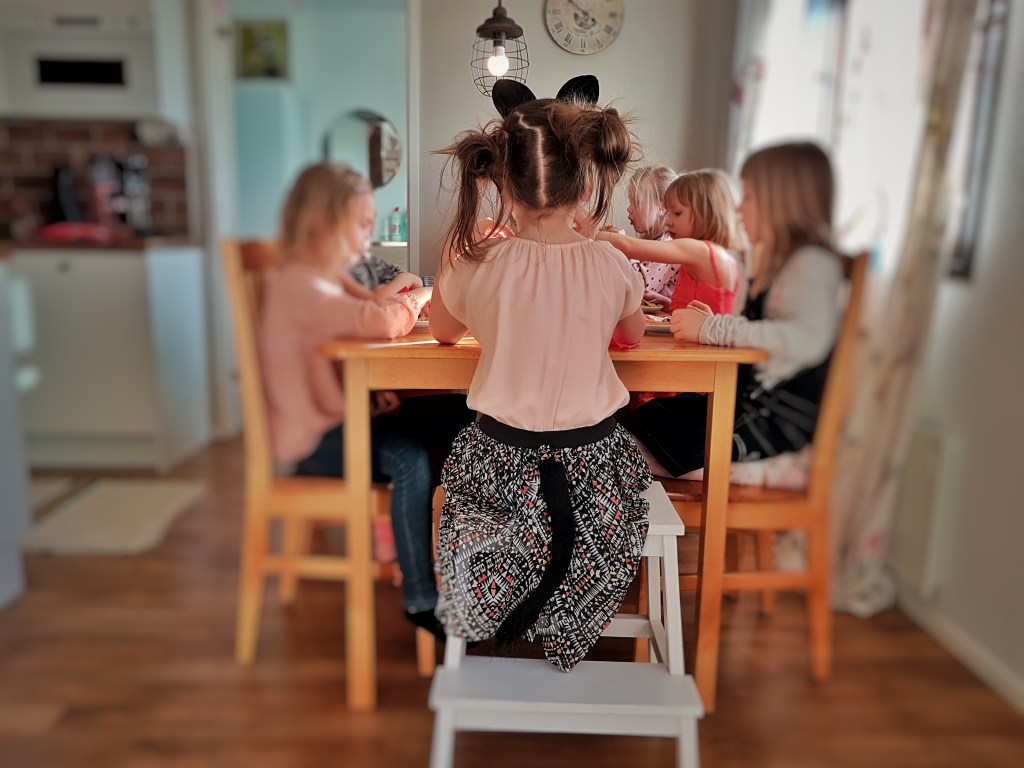 Päätin minimoida kodissamme sekoilun ja käytin huolella aikaa synttäriohjelman suunnitteluun. Hildan synttäriseikkailu sisälsi koko 9-henkisen tyttölauman yhteisiä tehtäviä reilun tunnin ajaksi. Rasteja oli piilotettu ympäri kotiamme ja ne löytyivät vihjeiden avulla. Rastit sisälsivät esimerkiksi tanssimista, yhteislaulua ja photoshootin. Yhdessä rasteista piti keksiä adjektiivejä, jotka täytin ennalta kirjoitettuun tarinaan. Valmis tarina oli jättimenestys ja sai aikaan hykerryttävän naururemakan.